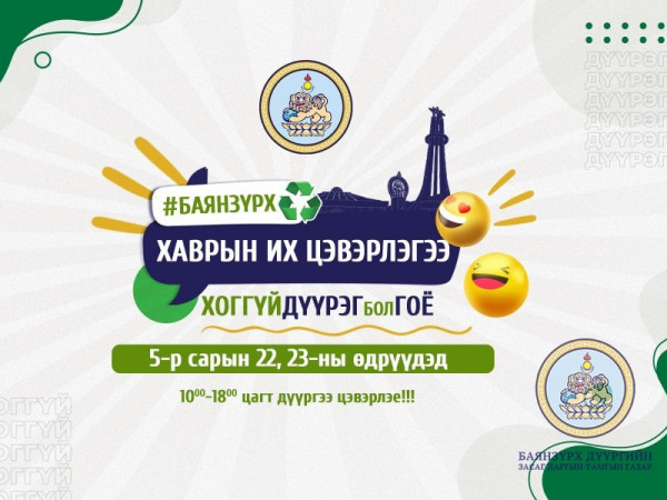Баянзүрх дүүргийн хэмжээнд энэ сарын 22,23-ны өдрүүдэд "Баянзүрх дүүрэг Хоггүй бол ГОЁ" уриа доор Хаврын Их Цэвэрлэгээний ажил хийгдэнэ.