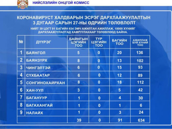 Улаанбаатар хотод Коронавируст халдварын тархалт эрчимтэй нэмэгдэж байгаатай холбогдуулан Улсын Онцгой коммисын даргын тушаалаар олон нийтийн газар, аж ахуйн нэгж, байгууллагуудад халдвар, хамгааллын …