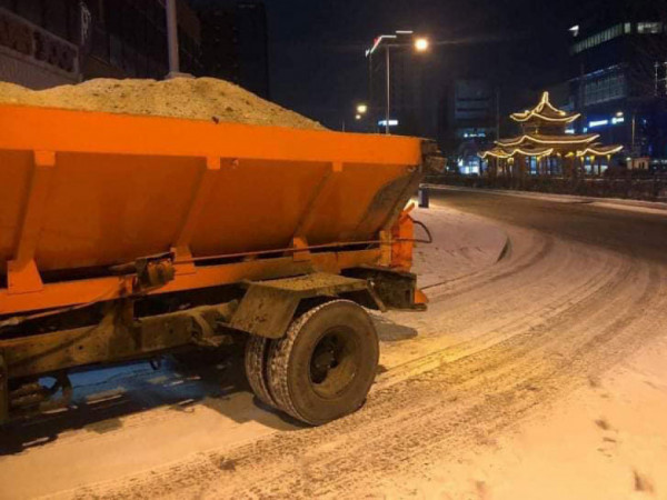 Урд шөнө орсон цасыг арилгахаар 200 тонн давс бодис цацжээ