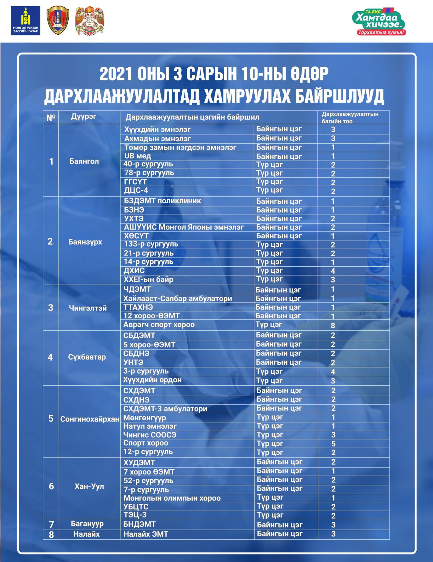 Өнөөдөр худалдаа үйлчилгээний байгууллагын ажилтнуудыг вакцинжуулалтад хамруулах хуваарь гарсан бөгөөд нийт дархлаажуулалтын 46 цэг ажиллах юм.