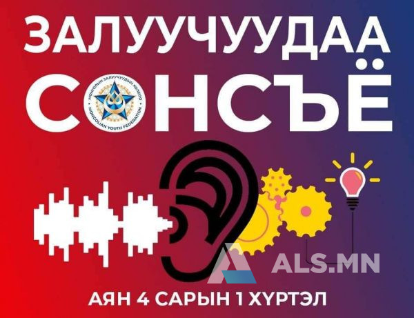 Монголын Залуучуудын Холбоо “Залуучуудаа сонсъё” аян зарлалаа. Энэхүү аянаар залуучуудын бүсчилсэн уулзалт, хэлэлцүүлгийг хийж 4-р сарын 1-нд нэгдсэн хэлэлцүүлгийг зохион байгуулна. Монголын Залуучуудын Холбоо 16-40 насны Монгол Улсын иргэдийг нэгтгэдэг 100 жилийн түүхтэй байгууллага.