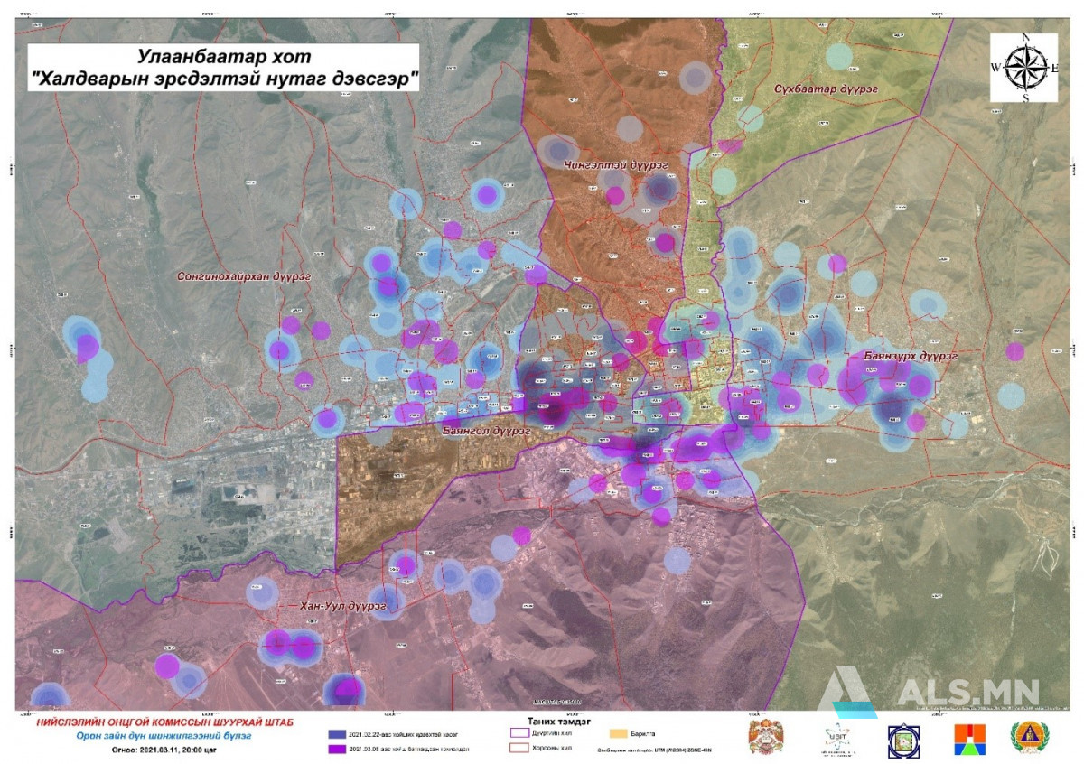 Нийслэлийн Онцгой комиссын шуурхай штабын Орон зайн дүн шинжилгээний баг “Ковид-19” халдварын батлагдсан тохиолдлуудыг мэдээллийн санд бүртгэж, орон зайн дүн шинжилгээний аргачлалаар халдварын эрсдэлийн тархалт, нягтрал, чиг хандлагын тооцоолж байгаа билээ. Тус багийн тусгай аргачлалаар тооцоолж гаргасан халдвар тархах магадлалтай хороодыг танилцуулж байна. Үүнд,