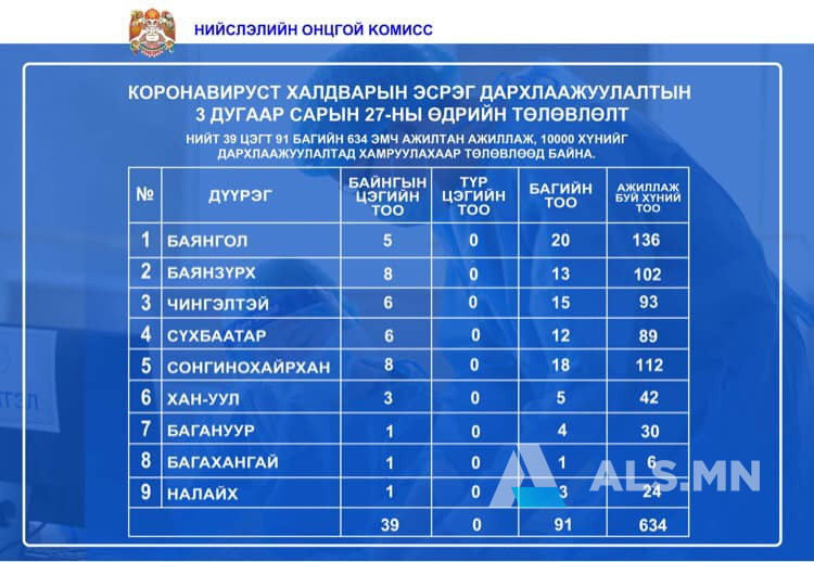 Өнөөдөр буюу гуравдугаар сарын 27-нд дархлаажуулалтын 39 цэгт 91 багийн 634 эмч, ажилтан ажиллана.