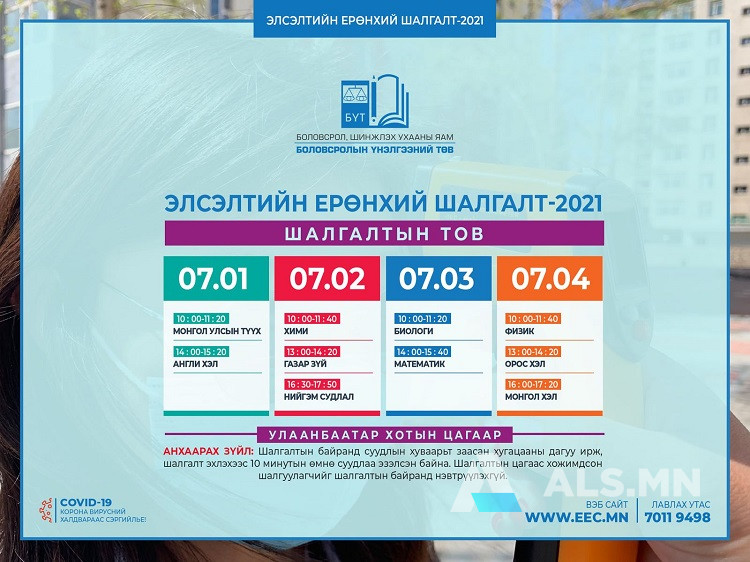 Хөл хорионы үед та Боловсролын үнэлгээний төвийн 80149038, 80169058, 80169038 утсанд хандана уу.