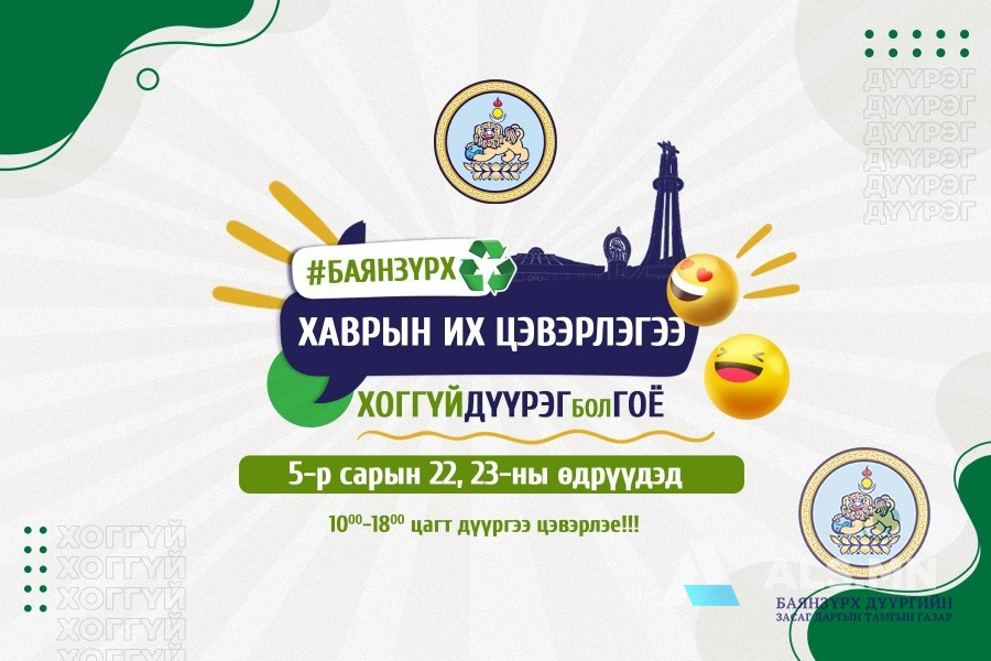 Баянзүрх дүүргийн хэмжээнд энэ сарын 22,23-ны өдрүүдэд "Баянзүрх дүүрэг Хоггүй бол ГОЁ" уриа доор Хаврын Их Цэвэрлэгээний ажил хийгдэнэ.