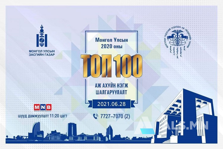 Засгийн газар, МҮХАҮТ хамтран Монгол Улсын ТОП-100 аж ахуйн нэгжүүдийг эрэмбэлэн өргөмжлөх ёслолыг энэ сарын 28-нд 20 дахь жилдээ зохион байгуулна.