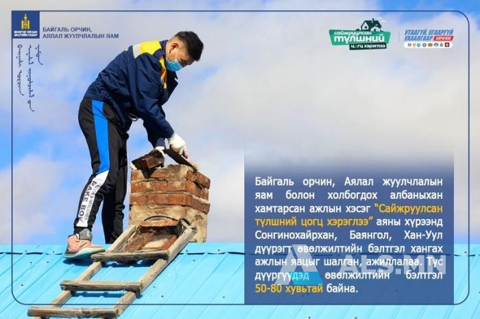 Аяны хүрээнд нийслэлийн иргэдийн өвөлжилтийг хангах, түүн дотроо сайжруулсан түлшний зөв хэрэглээ, яндангийн битүүмжлэл, угаарын хийн мэдрэгчийн хяналт, зөв хэрэглээг иргэдэд дадал хэвшил болгох зорилготой.