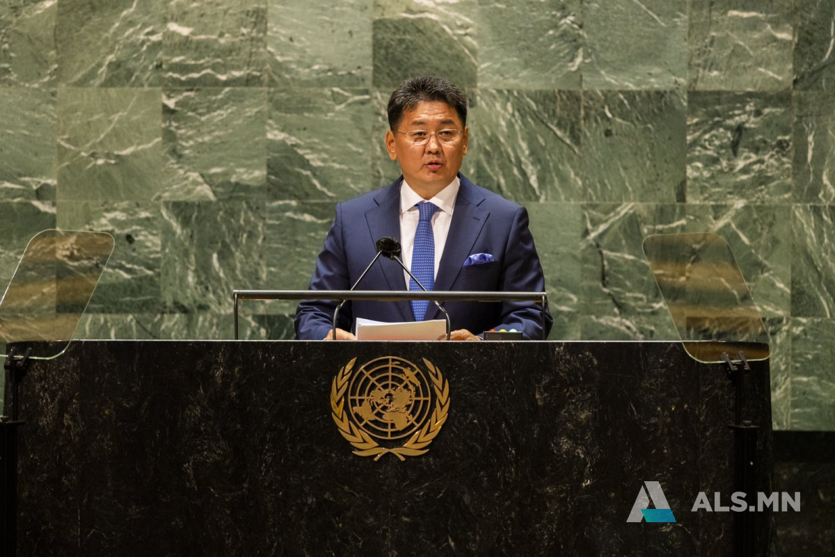 Монгол Улсын Ерөнхийлөгч У.Хүрэлсүх 2021 оны 9 дүгээр сарын 22-ны өдөр НҮБ-ын Ерөнхий Ассамблейн 76 дугаар чуулганы Ерөнхий санал шүүмжлэлд үг хэллээ.