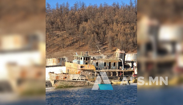 Хөвсгөл нуурт живсэн Сүхбаатар хөлөг онгоцыг татан гаргаад байна.