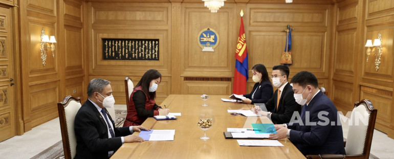 Монгол Улсын Ерөнхий сайд Л.Оюун-Эрдэнэ НҮБ-ын Монгол дахь суурин төлөөлөгч Тапан Мишраг өнөөдөр хүлээн авч уулзаж, Монгол Улсад НҮБ-аас 2023-2027 онд хэрэгжүүлэх хамтын ажиллагааны баримт бичгийн талаар санал солилцлоо. Монгол Улсын бүрэн вакцинжуулалт үндэсний хэмжээнд 66 хувьтай байна. Бүүстер тунд нийт хүн амын 16 хувь хамрагдсан байна. Вакцинжуулалтын хувь бусад орнуудтай харьцуулахад харьцангуй өндөр байгааг Ерөнхий сайд уулзалтын эхэнд тэмдэглээд КОВАКС-ын шугамаар манай улсад Пфайзер вакцины нэг сая гаруй тун хандивласанд талархал илэрхийлэв. Мөн манай улс хүүхдийн вакцинжуулалтын асуудлаар зөвлөмж хүссэн захидлыг БиоНТек/Пфайзер компани руу хүргүүлсэн, КОВАКС-ын шугамаар дэмжлэг үзүүлэхийг Ерөнхий сайд хүслээ. Ард иргэд ковидын эсрэг вакцинд идэвхтэй хамрагдсаны дүнд Монгол Улс энгийн амьдралд шилжин орж буйг Ерөнхий сайд тэмдэглэлээ. Монгол Улс НҮБ-тай хамтын ажиллагааны цар хүрээгээ улам өргөжүүлэх, дэлхийн улс орнуудын хамтын их үйлсэд оруулах хувь нэмрээ улам нэмэгдүүлэхийг зорьж байгааг Засгийн газрын тэргүүн Л.Оюун-Эрдэнэ дурдаад Монгол Улсын Ерөнхийлөгч У.Хүрэлсүх “Тэрбумаар тоологдох мод ургуулах” санаачилгыг Нэгдсэн Үндэстний Байгууллагын Ерөнхий Ассамблейн 76-р чуулганы үеэр тунхаглан зарласан нь цөлжилт, газрын доройтол, ой мод, ойн сан, усны эх үүсвэр, экологийн тэнцвэрт байдлыг хадгалах төдийгүй уур амьсгалын нөлөөллийг бууруулах, эх дэлхийнхээ насыг уртасгах хүн төрөлхтний үйлсэд монголчууд бидний оруулж хувь нэмэр юм гэдгийг тэмдэглэв. Энэ хүрээнд Монгол Улсын Засгийн газар хөгжлийн стратеги зорилго, үйл ажиллагаандаа ногоон шийдлүүдийг эрхэмлэсэн техник, технологийн дэвшлийг нэвтрүүлж ажиллана гэлээ.