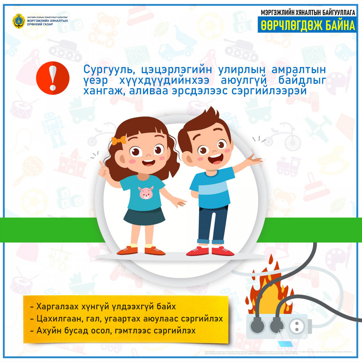СУРГУУЛЬ, ЦЭЦЭРЛЭГИЙН УЛИРЛЫН АМРАЛТЫН ҮЕЭР ХҮҮХДҮҮДИЙНХЭЭ АЮУЛГҮЙ БАЙДЛЫГ ХАНГАЖ, АЛИВАА ЭРСДЭЛЭЭС СЭРГИЙЛЭЭРЭЙ