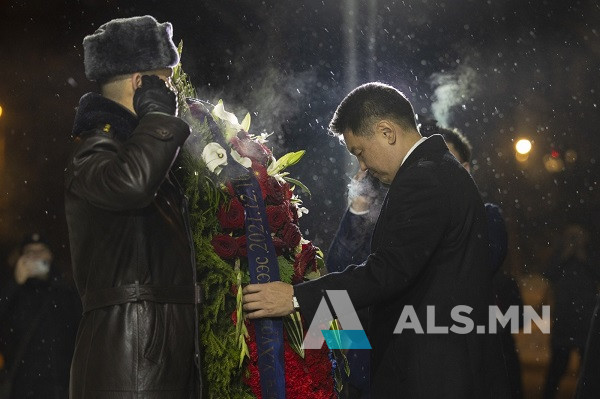 Оросын Холбооны Улсад албан ёсны айлчлал хийж байгаа Монгол Улсын Ерөнхийлөгч У.Хүрэлсүх Хүндэтгэлийн дэнж дэх Ялалтын цэцэрлэгт хүрээлэнд байрлуулсан “Ялалтад тэмүүлсэн морьд” хүрэл хөшөөнд цэцэг өргөж, хүндэтгэл үзүүлэв.