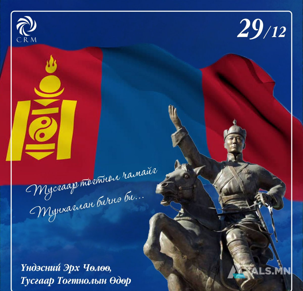 Арванхоёрдугаар сарын 29-н Лхагва гарагт бүх нийтийн амралтын өдөр. Учир нь энэ өдөр Үндэсний эрх чөлөө, тусгаар тогтнолоо сэргээсний 110 жилийн ойн баярын өдөр тохионо.