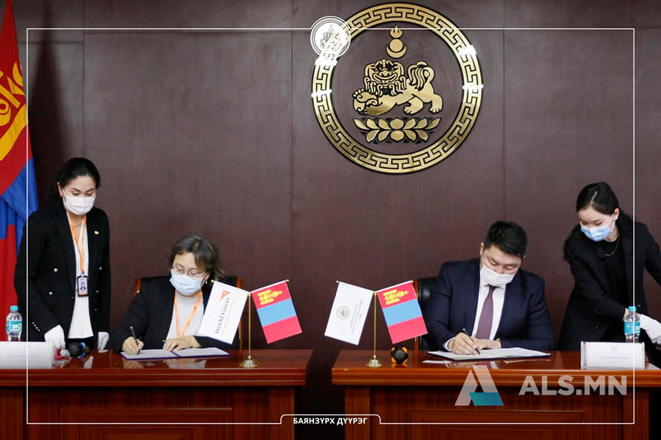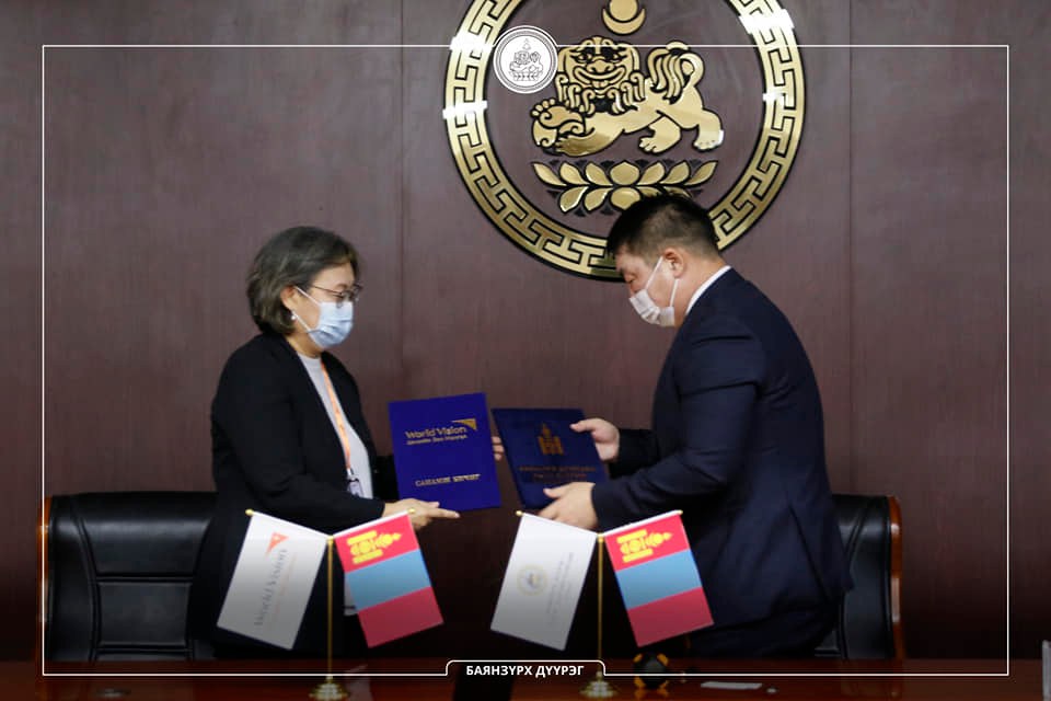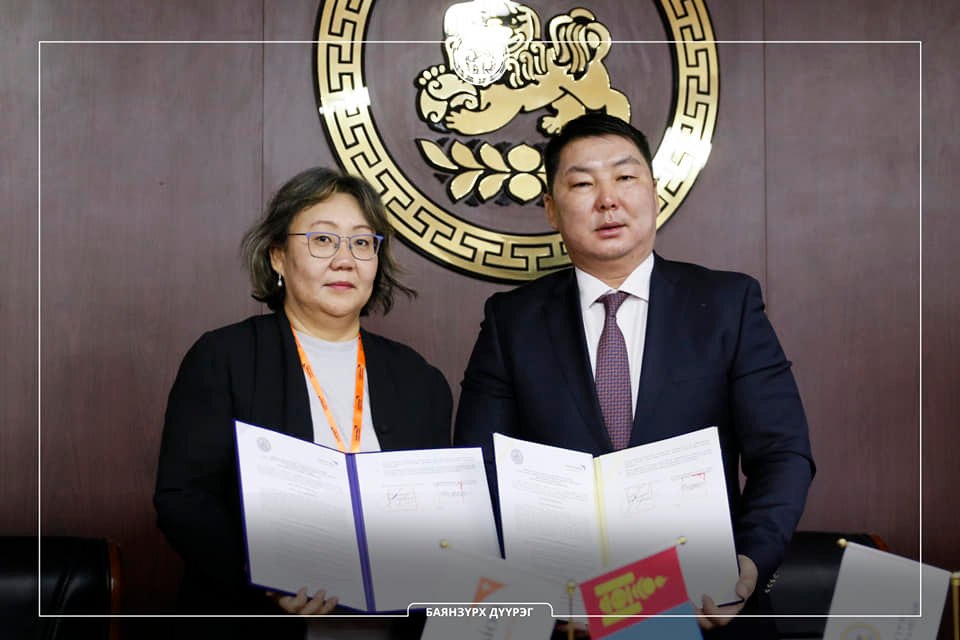 Баянзүрх дүүргийн Засаг дарга Н.Баярмөнх, Дэлхийн зөн Монгол олон улсын байгууллагын Үндэсний захирал Б.Болорцэцэг нар харилцан ойлголцлын санамж бичигт гарын үсэг зурлаа.