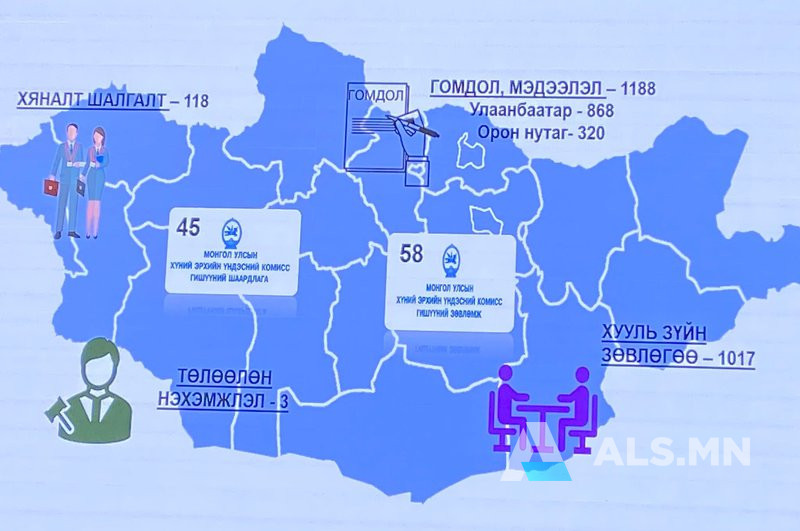 Зөвлөгөөнд ХЭҮК-ын Гомдол, хяналт шалгалтын хэлтсийн дарга Т.Ихтамир оролцож, ХЭҮК-ын чиг үүрэг, Комиссын гишүүний бүрэн эрх, хүний эрхийг хамгаалах үндэсний тогтолцооны талаар болон хүний эрхийн зөрчил, гомдол, мэдээлэл хүлээн авах, хянан шийдвэрлэх ажиллагаа, хүний эрхийн түгээмэл гарч буй зөрчлийн талаар оролцогчдод мэдээлэл өглөө. Өнгөрсөн онд ХЭҮК 1118 гомдол, мэдээлэл хүлээн авснаас 868 нь нийслэлээс, 320 нь орон нутгаас ирүүлсэн.