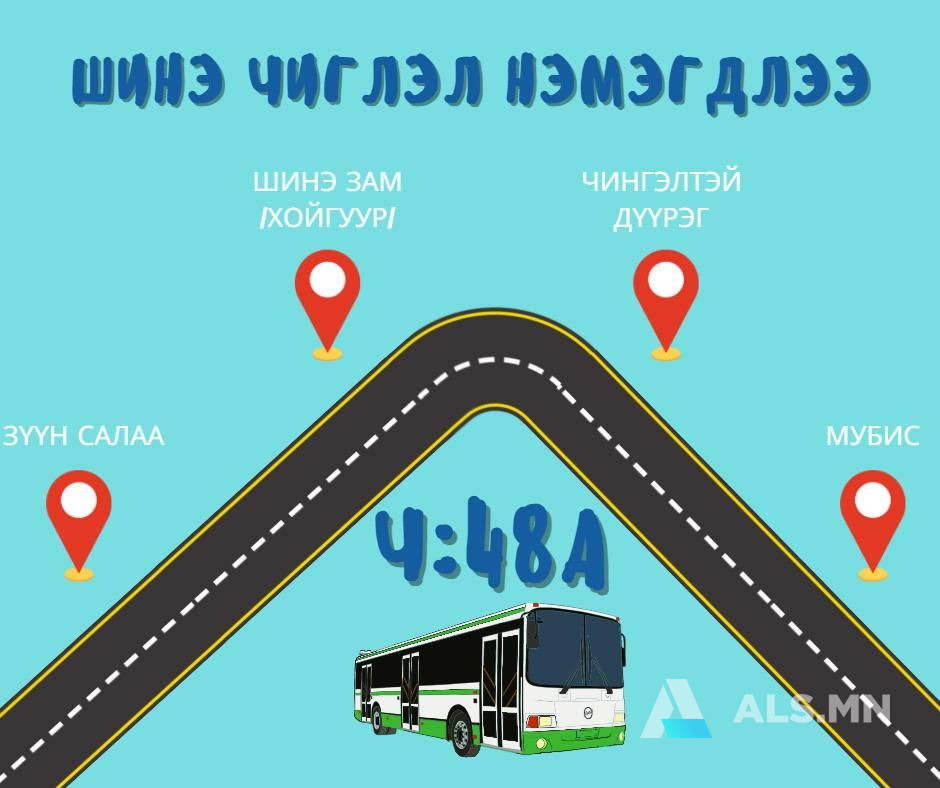 Нийслэлийн нийтийн тээврийн үйлчилгээний хүртээмжийг нэмэгдүүлэх, иргэдийн хэрэгцээ шаардлагыг үндэслэн Ч:48А чиглэлийг шинээр нэмлээ.