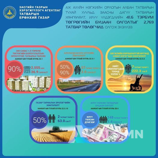 ААНОАТ-ын тухай хуулийн дагуу 2021 оны аж ахуйн нэгжийн буцаан олголт болох 41.7 тэрбум төгрөгийг өгч эхэлжээ. Үүнд: